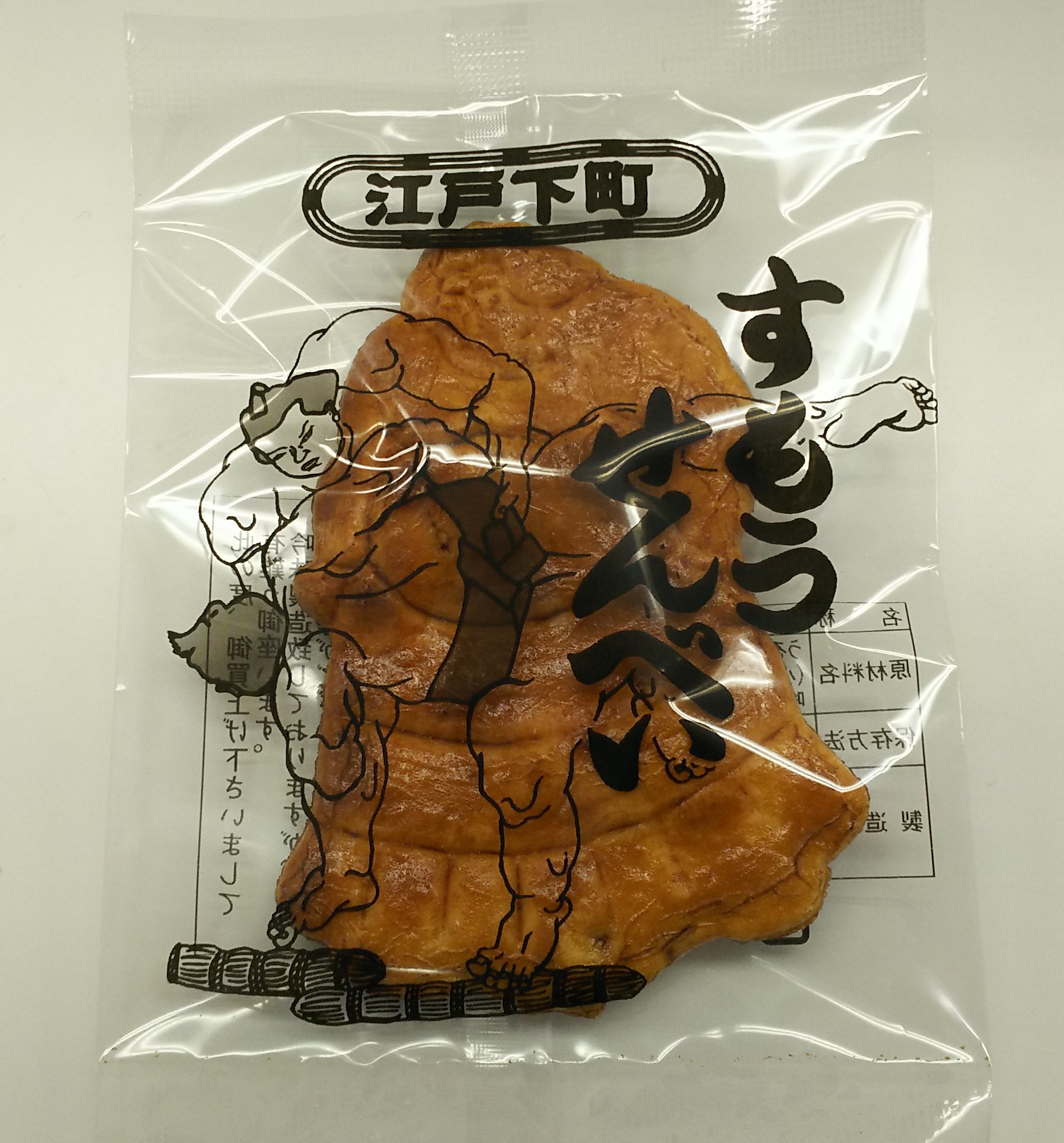両国にあるお店のようです。手焼きの固くて香ばしい本格的なお煎餅でした。関取の形をしていてこちらも目に楽しい商品です。