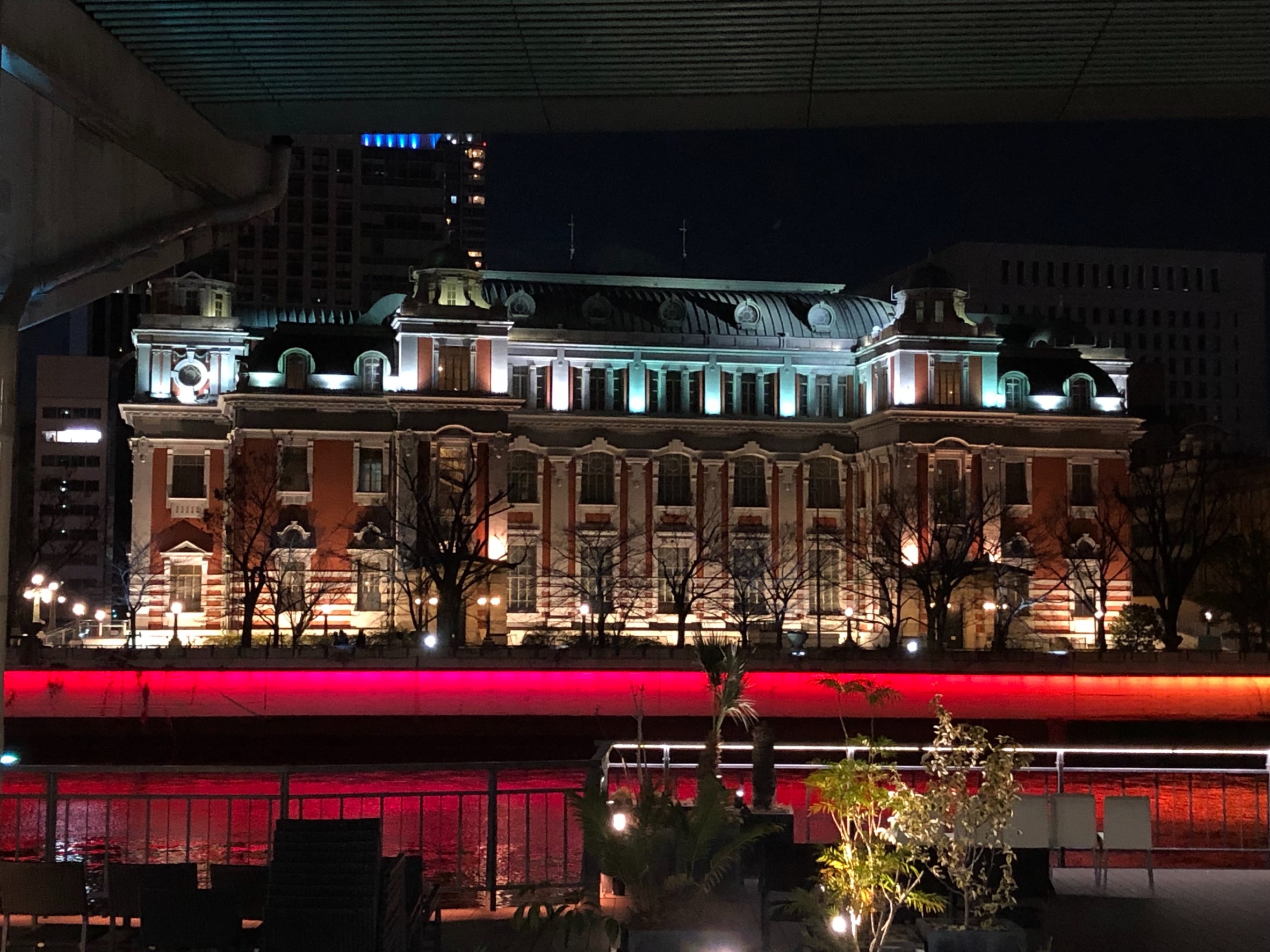 Mはこの日、夜クルーザーに乗って川を渡りながら美味しいご飯を食べられるオッシャレなアクティビティに参加したらしく、普段は見られない橋の下やライトアップされた中之島中央公会堂を横から見られて楽しかったそうです。