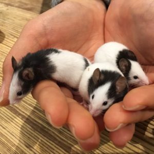 子供のようにちいさいパンダマウスの家族。本当におとなしく、人に慣れていて手の平に乗ってきてくれます。胴体が裸のギニアスキニーピッグは、抱っこするとものすごく暖かくて。鼻先に生えた毛にそっと触ると固くてしょぼしょぼしていてとっても可愛かったです。