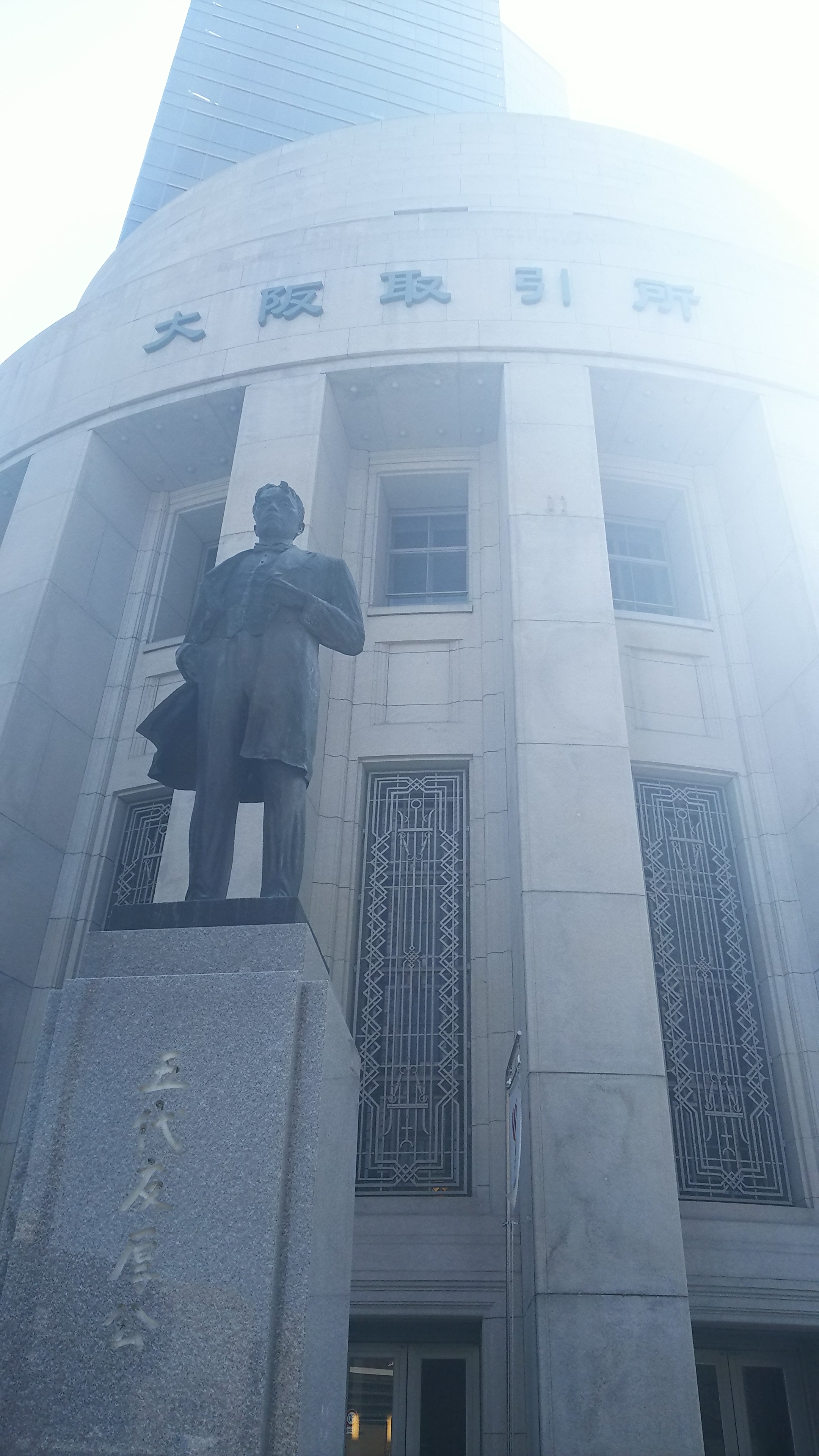 朝ドラ「あさが来た」で脚光を浴びた、大阪経済の祖・五代友厚が設立した大阪証券取引所は、建物の前に五代自身の銅像が建てられ、今もその重厚な存在感を残しています。