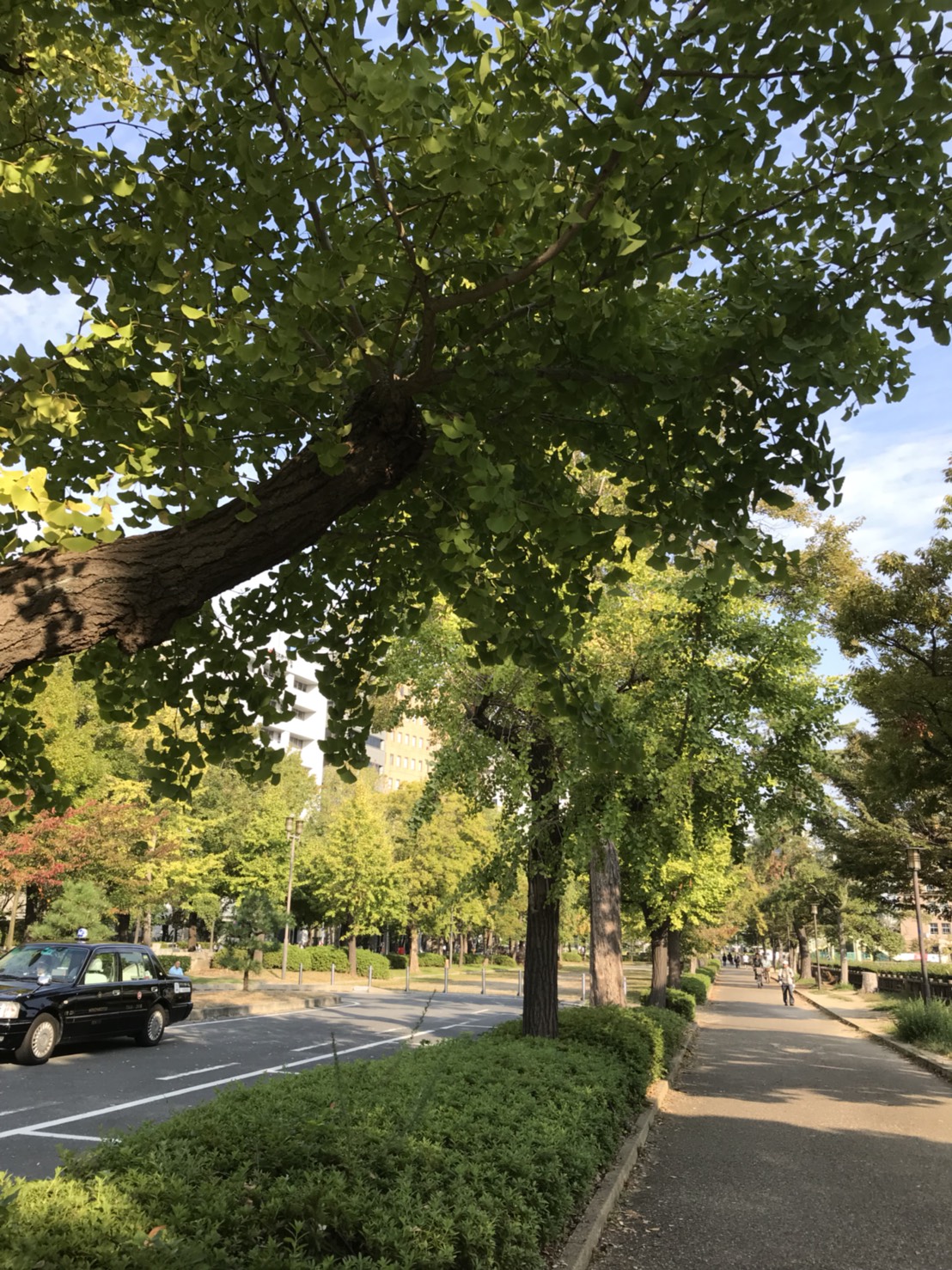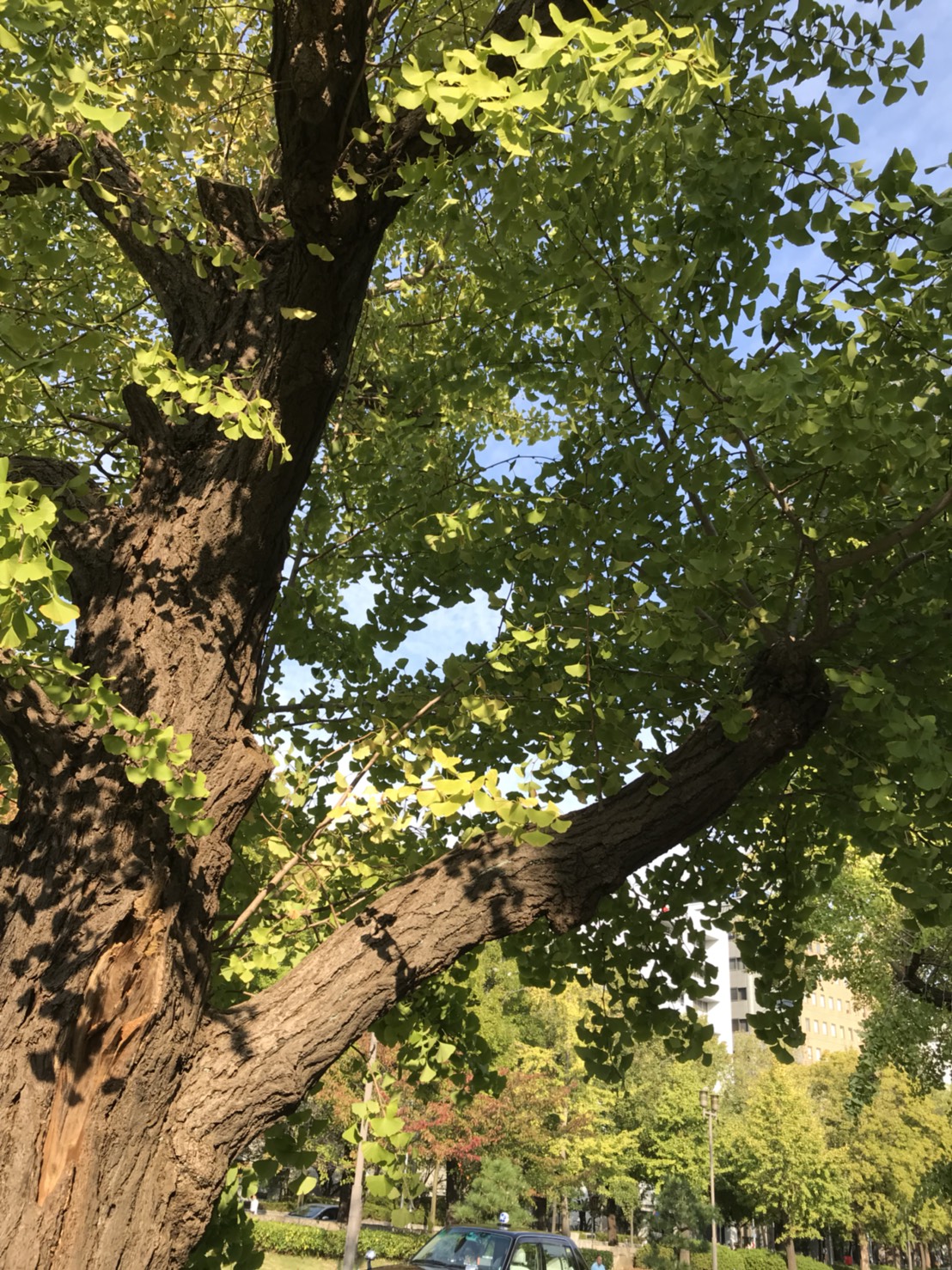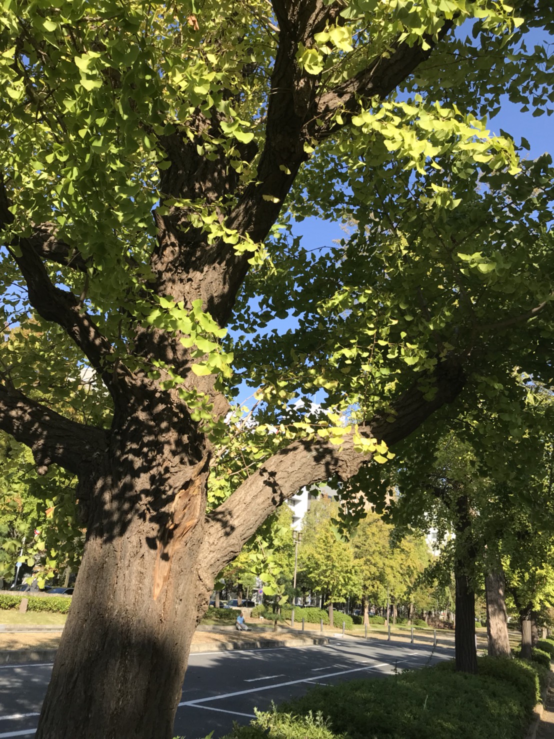 大阪の銀杏は葉の色はまだこんな感じですが、実はもう落ちているところも。