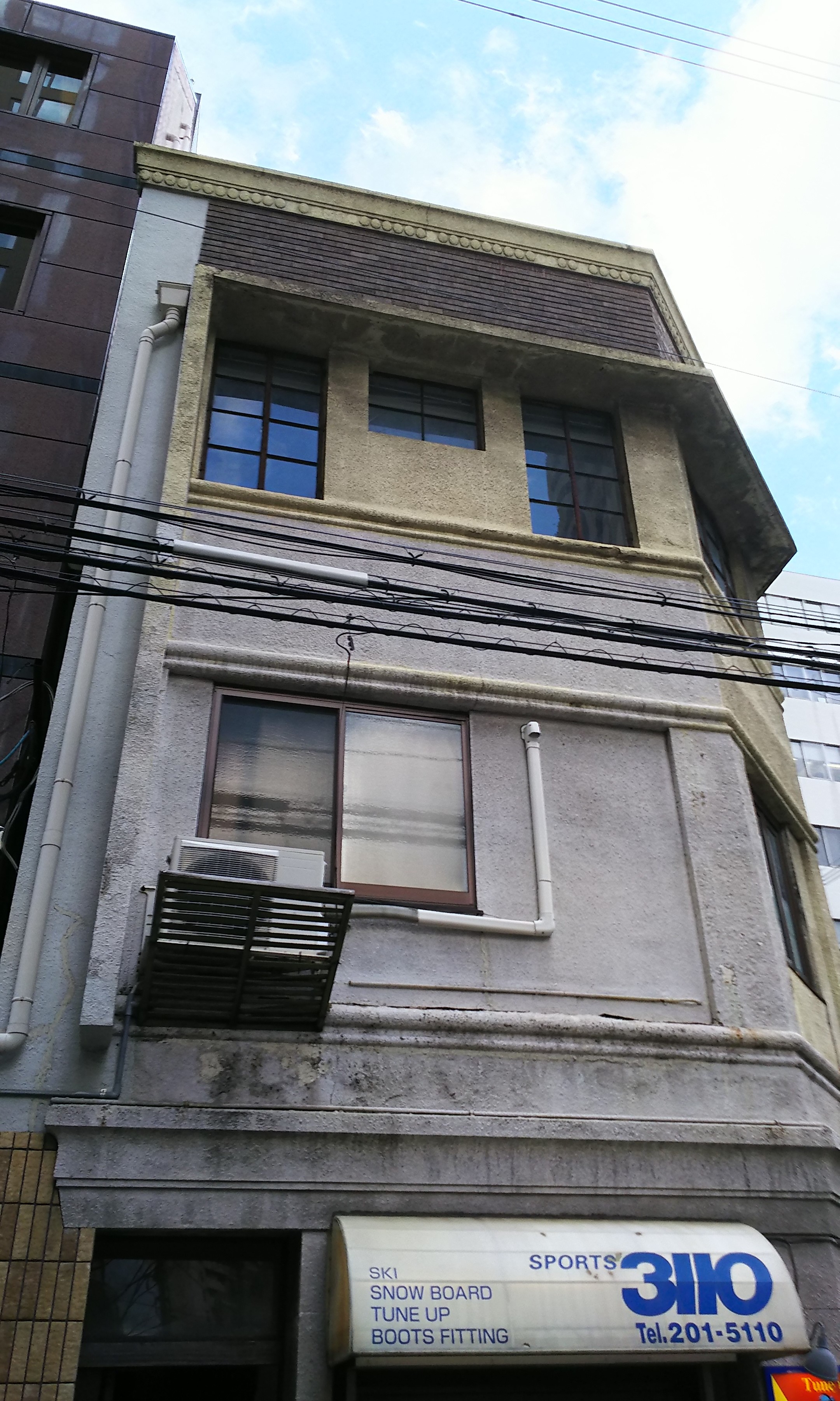 板谷歯科医院は大正8年(1919年)に開業、昭和13年(1937年)にここへ転居したという記録が残っています。詳しい竣工年は分かっていませんが、おそらく昭和元年(1925年)頃竣工のものではなかろうかと言われています。RC造、地上3階建て。