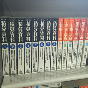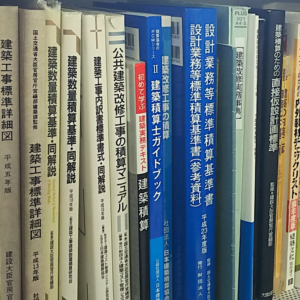 ずらっと並ぶ本棚には、弊社の本業である積算、建築・土木の資料も沢山鎮座しています。